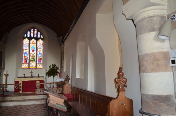 One or more of the church leaflets suggests that the chancel arch, which is of varied Heath Stone, would seem to have been originally of the round headed Norman style, although I've found no authoritative references to this idea.