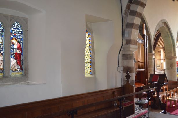 [Consider the window opening on the north wall by the altar which is not visible in the wall outside. Is it still there now?