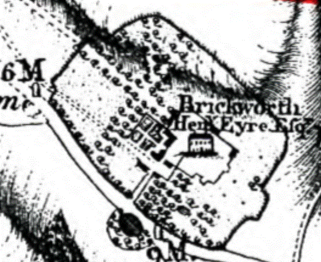 The present Brickworth House appears to stand on the same site as Giles Eyre's original 1605 house. This is not the same as Brickworth Farmhouse, built in 1725 during the time of Giles Eyre (4, 1664-1734) and now advertised for B&B.