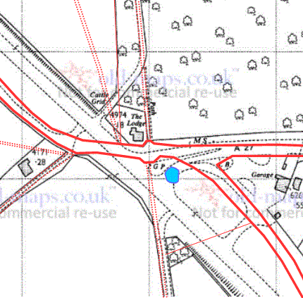 The road junction at Brickworth Corner has changed significantly, but enough elements of the old road alignments exist to be able to see the layout on the ground today. The old A36 is still present in the woods to the west of the A36. At Brickworth Corner it can be seen entering the woods west of the storm overflow pit by the entrance to Brickworth Quarry, from where it runs through the wood and rejoins the existing road roughly half way up the hill to Lower Bush Farm (previously Dry Farm). The lodge sits uncomfortably close to the A27/A36 junction today, but when built was alongside a straight section of road rather than a bend. At the time the A36 left the A27 at a T-junction and the relationship between the old and new roads can be seen below and on the Old Roads page. Where the garage now stands was a pond associated with Brickworth House.