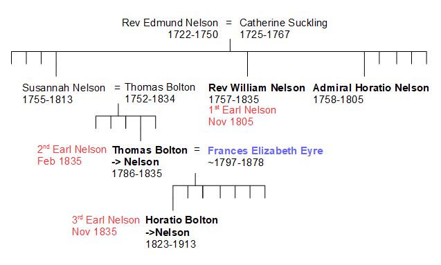 Showing the link between Frances Elizabeth Eyre and the Nelsons via Thomas Bolton