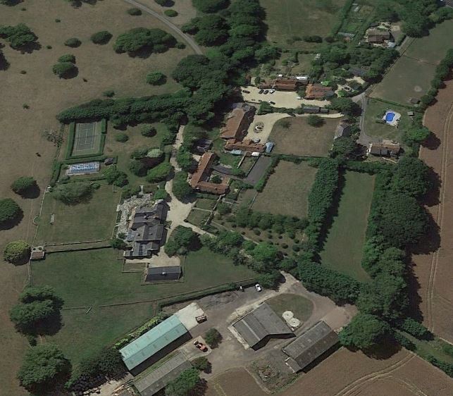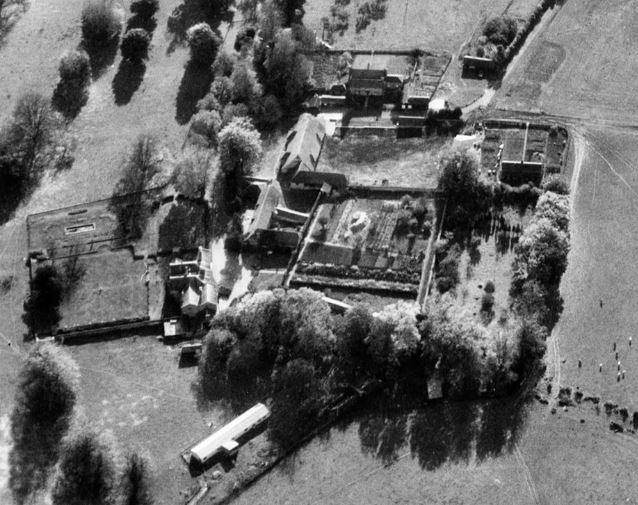 Looking at the detail on the 1876 map extract below overlaid on a modern Google Earth view, it can be seen that many buildings and boundaries remain from 1876 and probably in many cases from the original layout of the area around the house. The walled garden immediately behind the house is a prominent feature and the several buildings of the farm remain unchanged in this time.