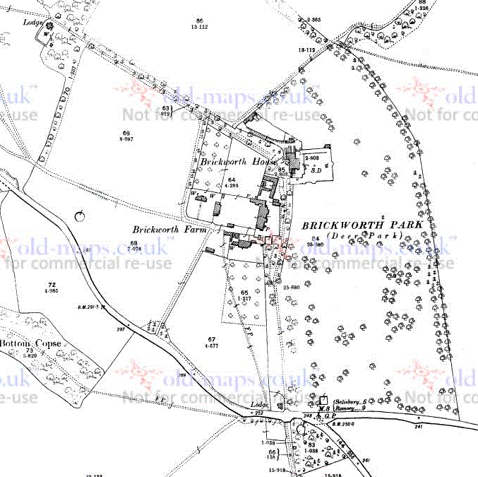 Left: Brickworth House and Park in 1901 (1:2500 Ordnance Survey Map from old-maps.co.uk)