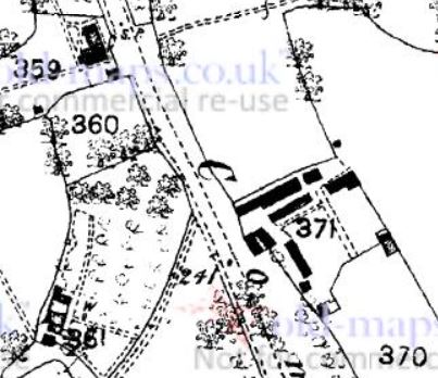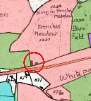 The second farmstead was situated opposite the entrance to Brympton Riding School. It was shown on the 1842 Tithe Map on 1231 Frenches Meadow, owned by the Countess Nelson (nee Frances Elizabeth Eyre) and farmed as arable by Thomas Crook. Frenches Meadow was used as arable at the time, with the adjacent woodland 1231 Sling in Frenches Meadow being pasture. Thomas Crook owned a house and garden (23) in The Street, and was one of the occupiers listed for 8 Cottages and Gardens (43) in Dean Lane near The Lynches, owned by the Countess Nelson.