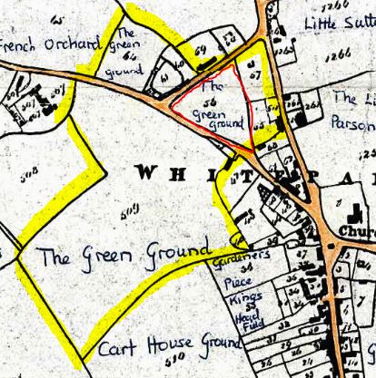 Possible extent of Alderstone village green based on the 1842 Tithe Map; The Triangle outlined in red