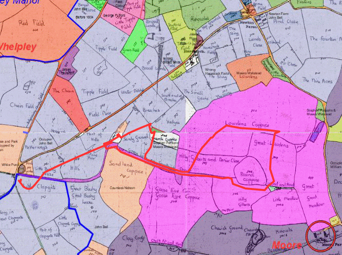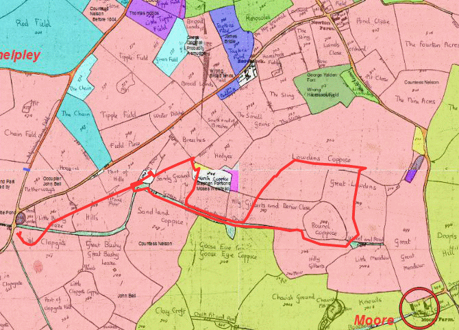 The area on the 1842 Tithe Map, showing Brickworth, Newton and Moore and occupiers