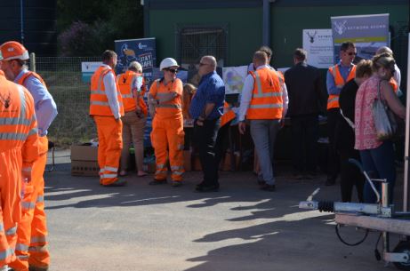 Staff and visitors mingling at the open day on 21st June 2018. As well as tours of the site there were displays and information booklets, activities and goodies for children and a steady supply of freshly baked pizza and hot and cold drinks to enjoy in the warm sunshine.