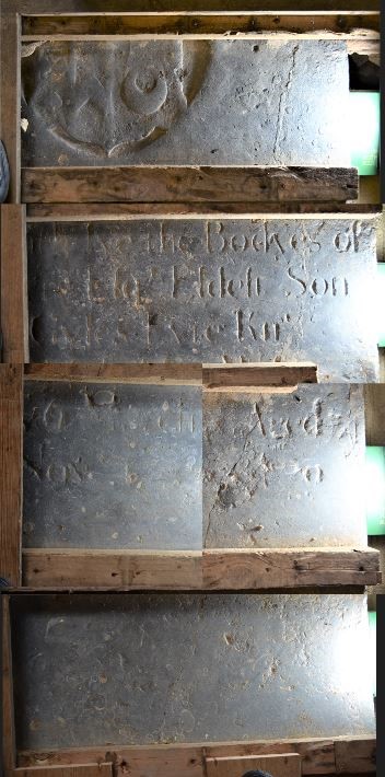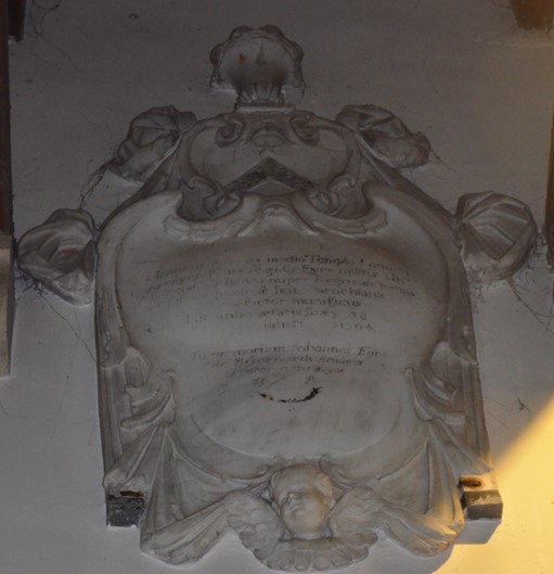 Gyles Eyre 1 d.1655 & Mary (wall memorial, flat stone GEJ in south aisle) 545, 550 right of west door