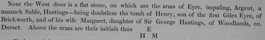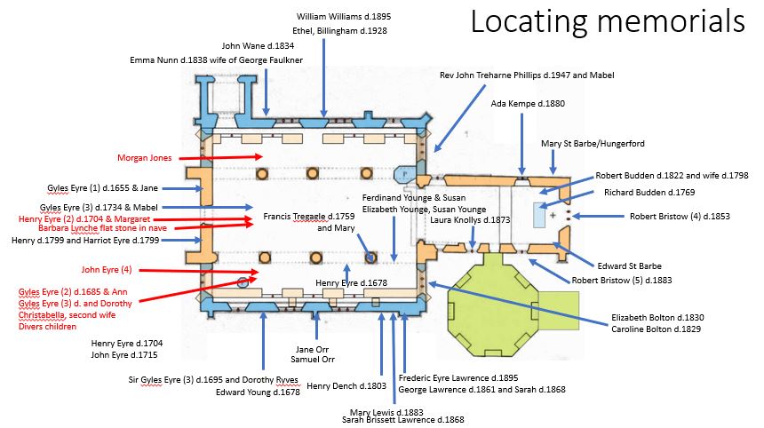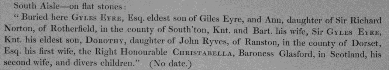 John Eyre of Landford, younger brother (flat stone in south aisle) not visible
