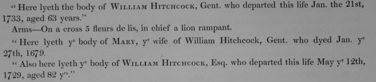 William Hitchcock d.1729 (flat stone in nave not visible)