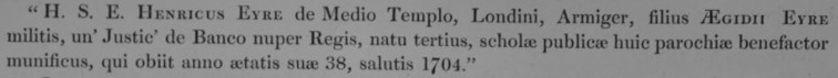 Henry Eyre d.1704 & Margaret (wall memorial, flat stone near west door not visible) 534 + charity bd.