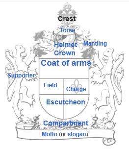 Explanation of heraldic terms used here to distinguish parts of the heraldic achievement