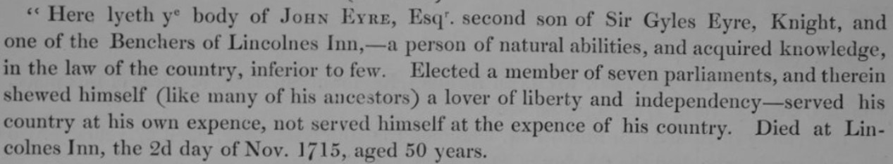 John Eyre d.1715 (flat stone in south aisle) not visible