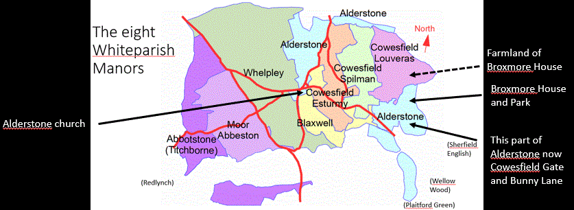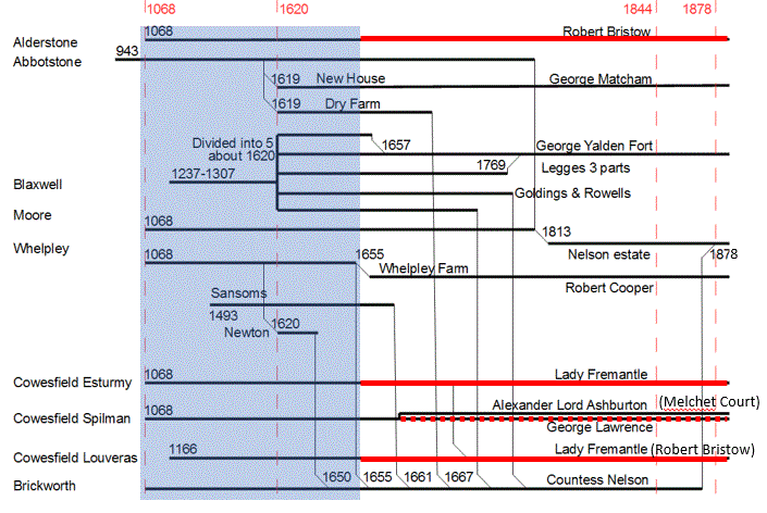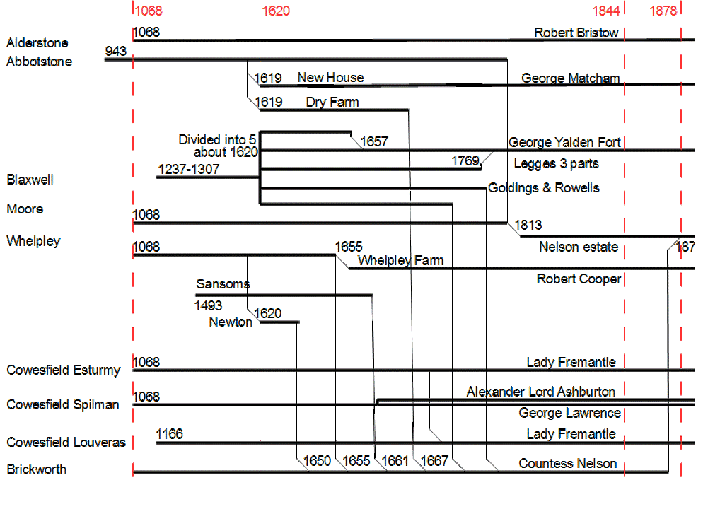 Blaxwell and the three Cowesfield manors lay between the two main parts of Alderstone