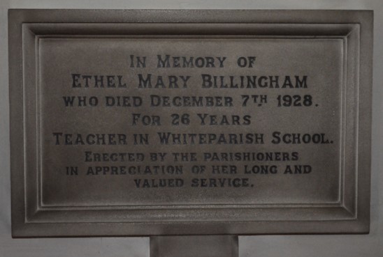 Ethel Mary Billingham d.1928 teacher (wall memorial in north wall of nave) 503