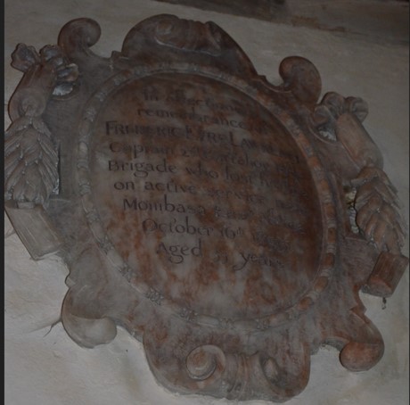 His place of death is recorded as Mgobani on the painting in the Rifles Museum, Mboyani on the Winchester Cathedral memorial (above), near Mombasa on the Whiteparish memorial. Could this be the modern Magombani, 14 miles from Mombasa?