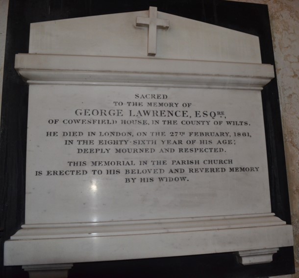 George Lawrence d.1861 (wife Sarah 1868) (wall memorial) south aisle, east end of outer wall) 526