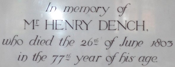 Henry Dench d.1803 (wall memorial) 530 behind organ on south aisle wall