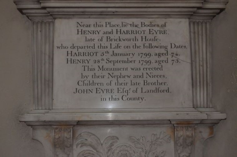 Henry Eyre d.1799 & Harriet Eyre (wall memorial) 544, 547, 550 left of west door