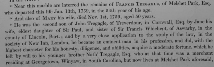 Francis Tregagle of Melchet Park d.1759 and Mary d.1759 his wife