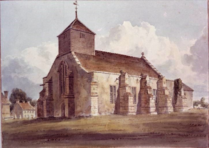 The church was changed by Butterfield in 1860 to its present form, the house was demolished in 1812 to build Broxmore House