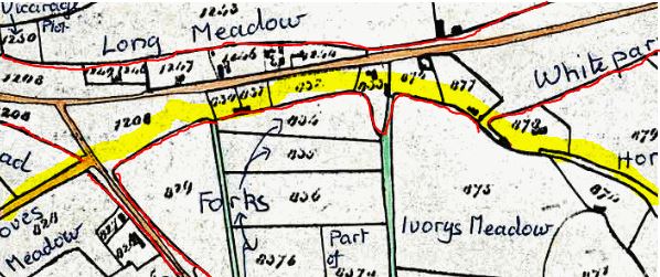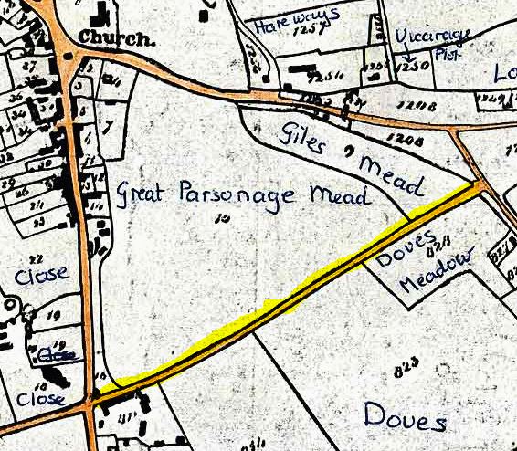 The 1842 Tithe Map below shows the two fields called Doves and Doves Meadow that presumably gave it its name, both of which were owned and occupied by Robert Cooper of Whelpley Manor. Parsonage Meadow on the other side of the lane is part of Alderstone Manor, owned at the time by Robert Bristow. Doves Lane forms part of the boundary between the two manors at this point, with the edge of Whelpley Manor continued at one time by Love Lane and later by Common Road.