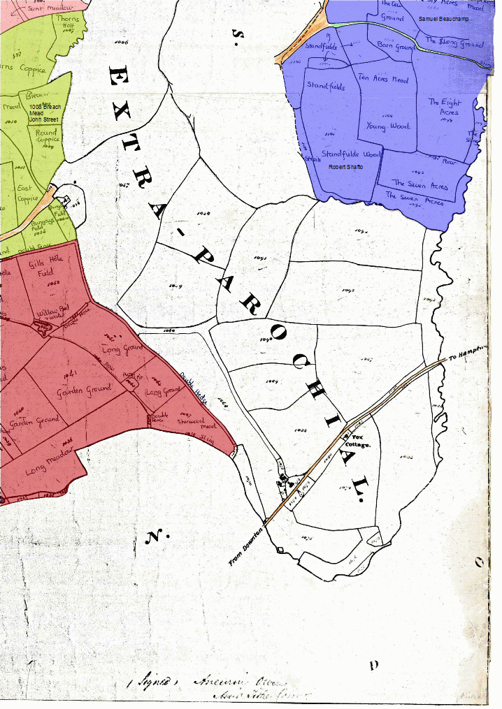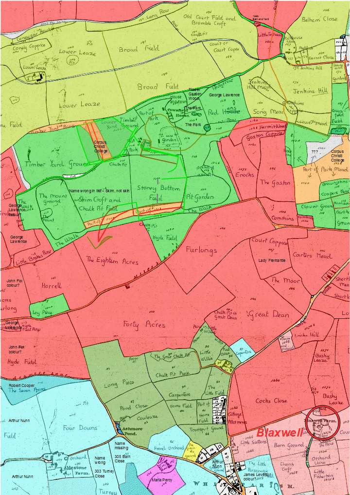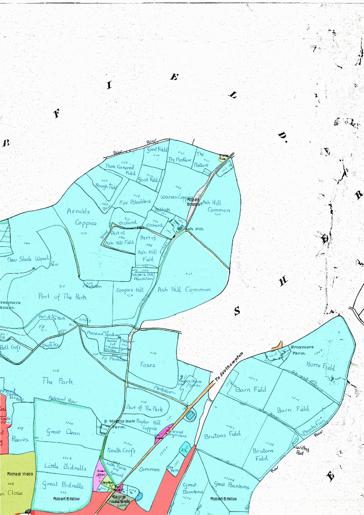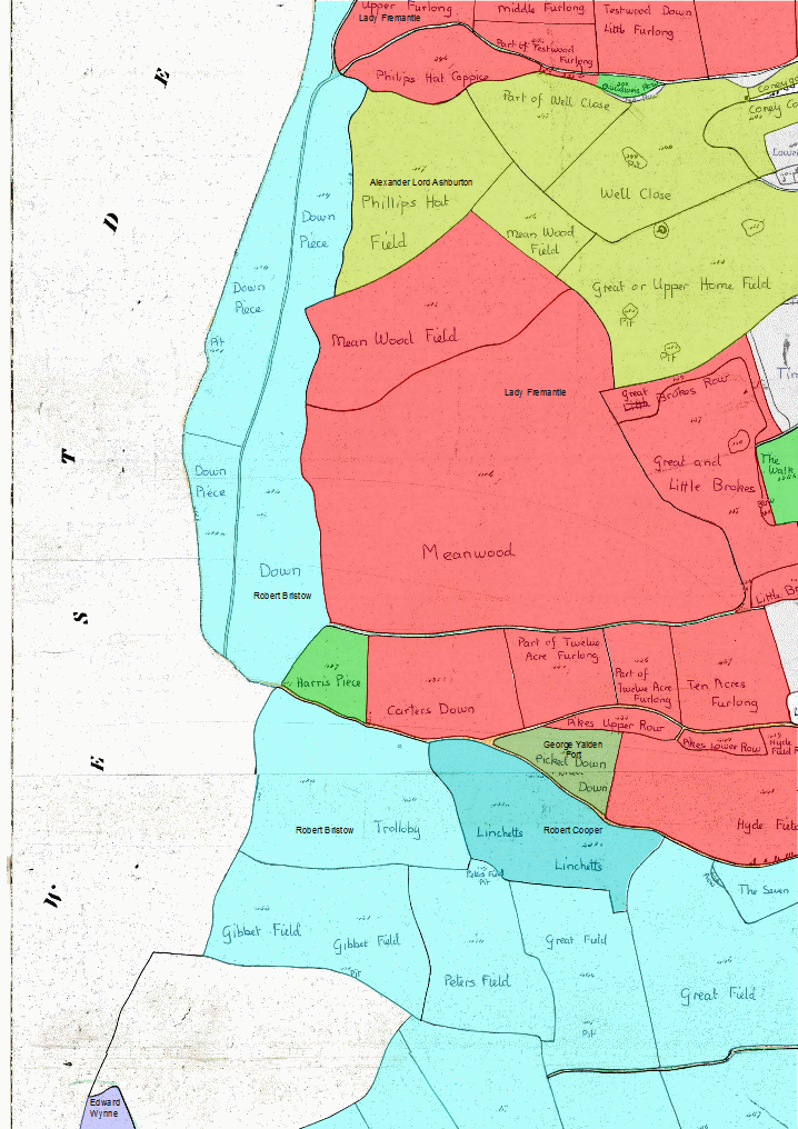 LANDOWNERS Click here for maps coloured with occupiers or roads and paths or commons or land use or manors and tithings or uncoloured [work in progress].