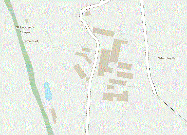 In recent times the farm was farmed by two brothers, one living in Whelpley Farm Cottage and the other in a new house, St Leonard's House, named after the adjacent St Leonard's Chapel., with the younger generation now taking over. A new house, Trees, was added south of the farm in the late 20th century, with various alterations made in 1990, 1991 and 2001. The Ordnance Survey standard map on the right above has the label for the chapel next to the wrong building.